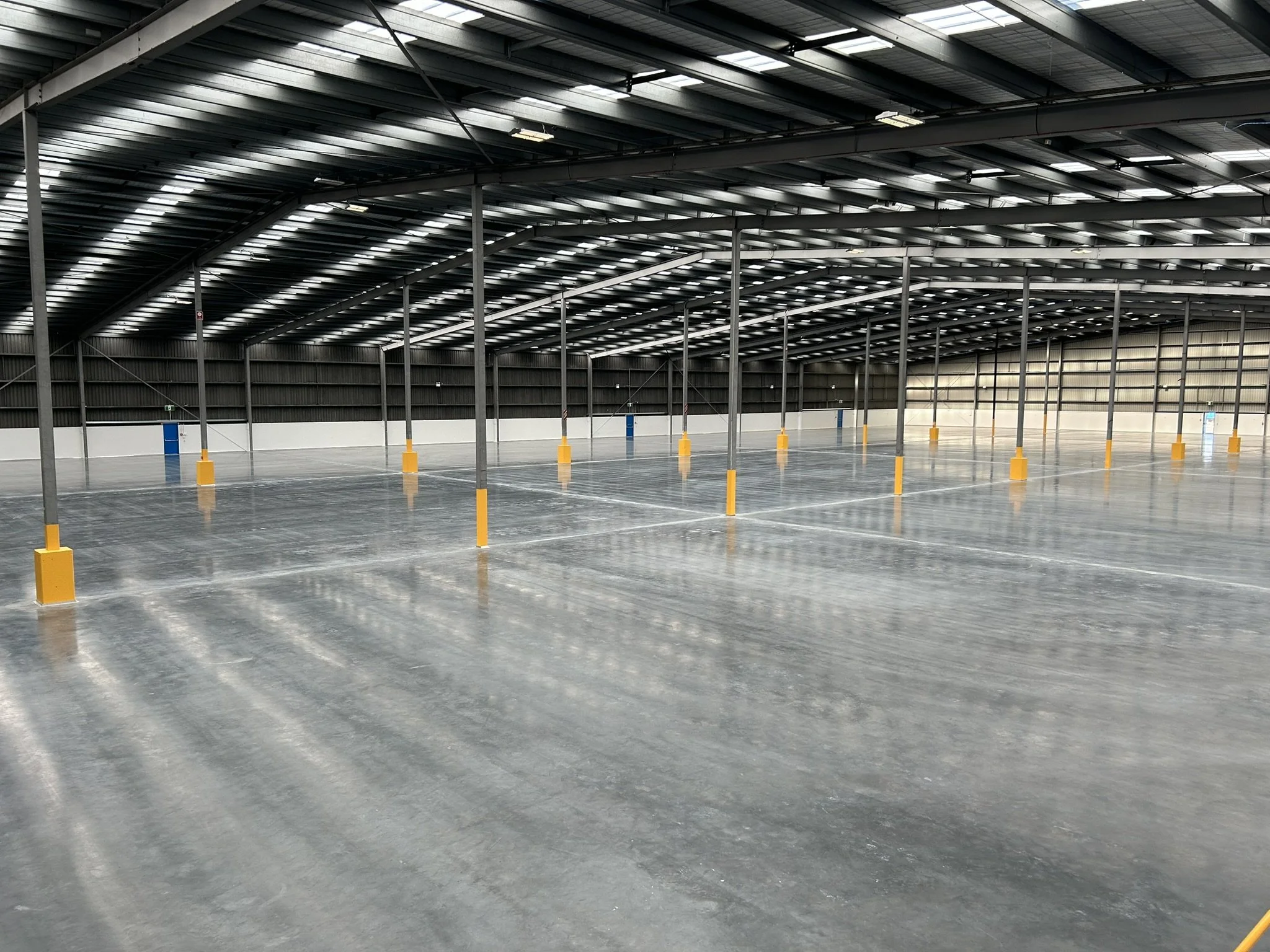 To meet these requirements, Flatworks delivered a high-performance Combi slab design, combining steel fibre reinforcement with conventional mesh to eliminate the need for saw-cuts. This approach improves durability, reduces maintenance, and ensures the surface can handle high point loads and dynamic traffic without premature cracking or surface distress.